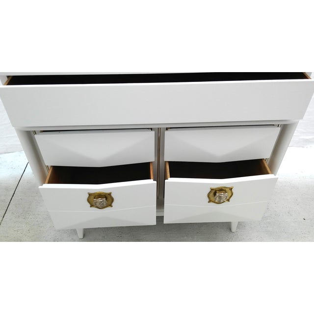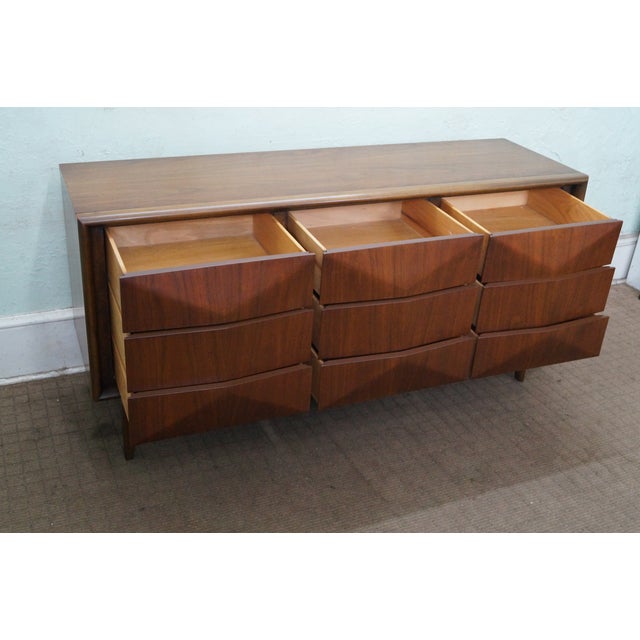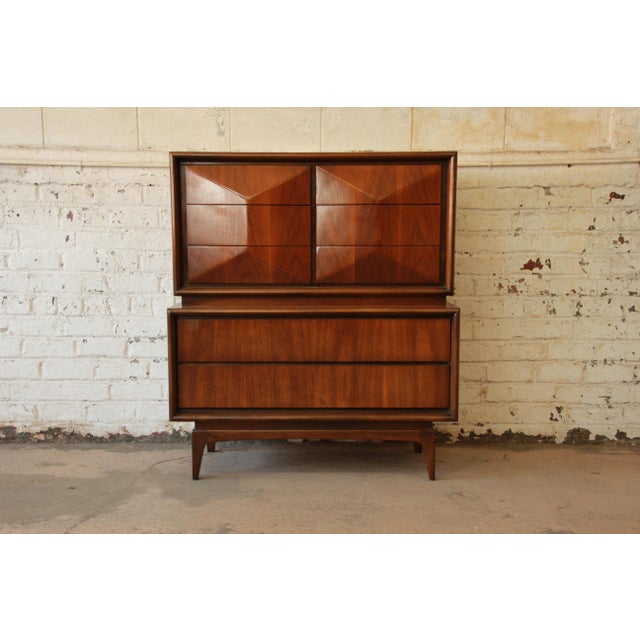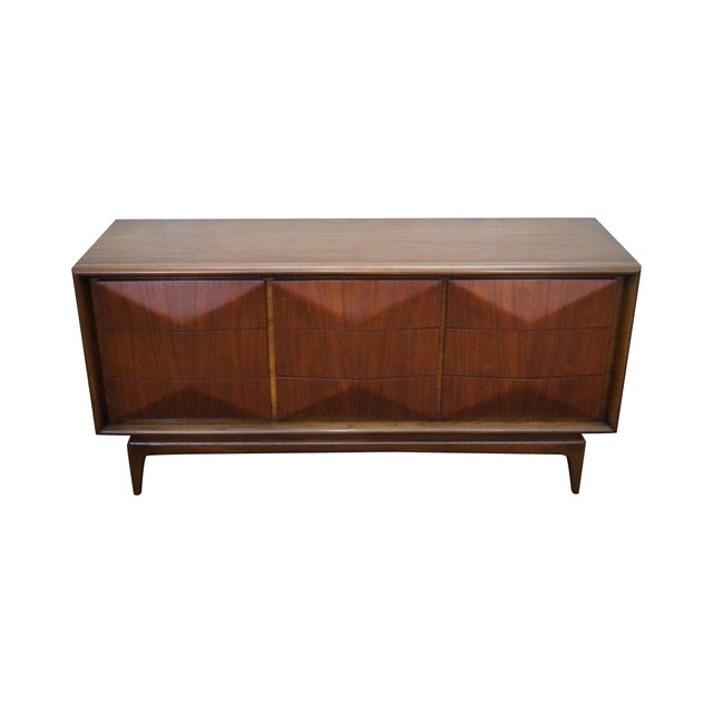 Brilliant mid century modern united diamond front long dresser (u.s.a. Kagan style diamond front high dresser by united. The dresser features stunning walnut wood grain and a sculpted diamond front. Wonderful solid wood dresser with great detail on front drawers solid dovetail drawers, in original finish very minor wear for its age, made by united furniture co. Our main goal is not to make a sale, it is to make a customer!